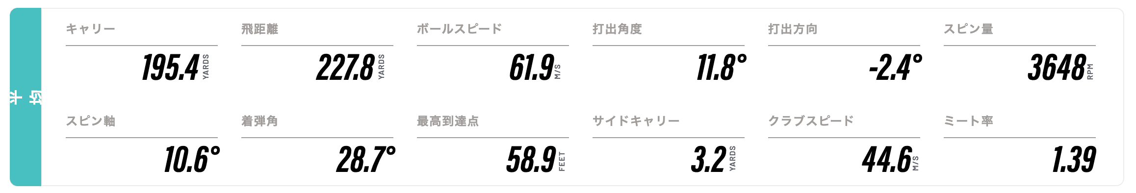 データで振り返ってみると、ミート率アップが課題のようです。クラブスピードはボチボチなので、クラブヘッドの正しい場所に正しい角度でボールが当たればボールの初速も上がるということになり、そうすれば距離も伸びるしまっすぐに飛ぶようになるのでしょう。